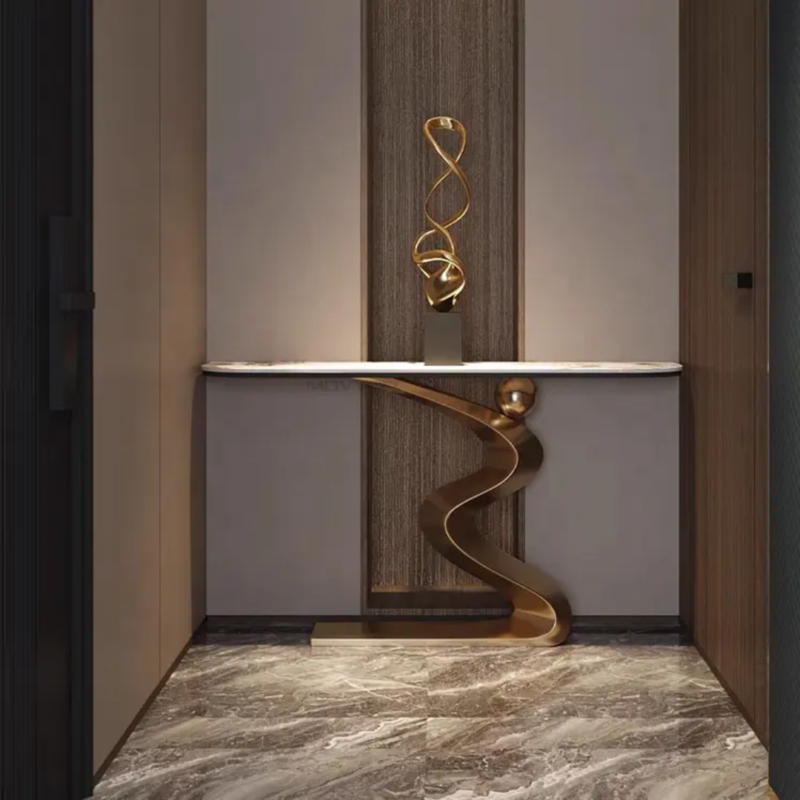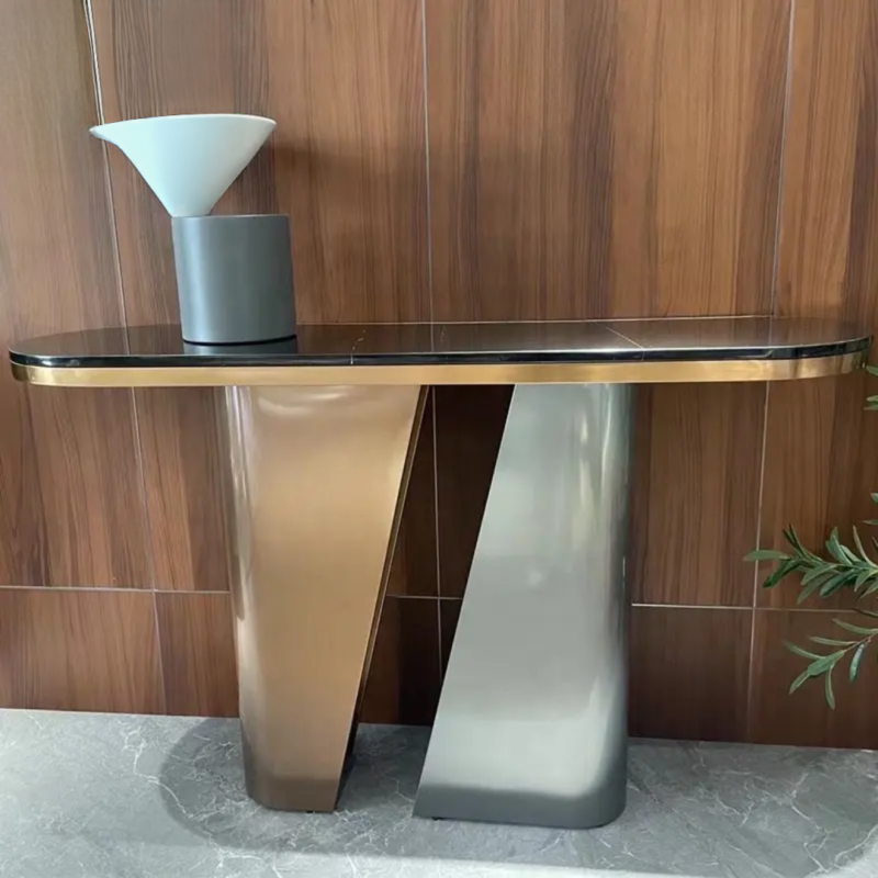 Oval Modern Design Console Table – Luxury Marble Top & Stainless Steel Frame