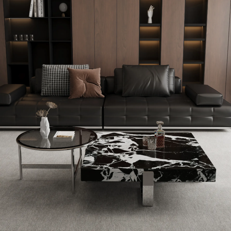 Elite Urban Nesting Coffee Table: Stainless Steel & Marble Top Luxury