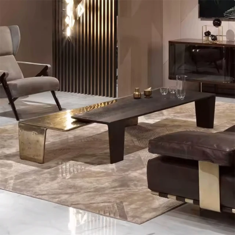 Narley Double-Layer Italian Light Luxury Coffee Table: Modern Elegance in Black and Gold
