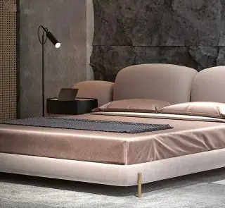 Miraj pink Contemporary Minimalist style Velvet Upholstered King Size Bed Low Profile
