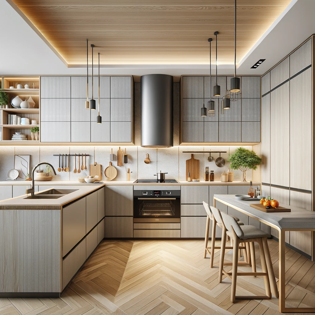 - Keywords: modern kitchen design, contemporary kitchen aesthetics, minimalist kitchen style.