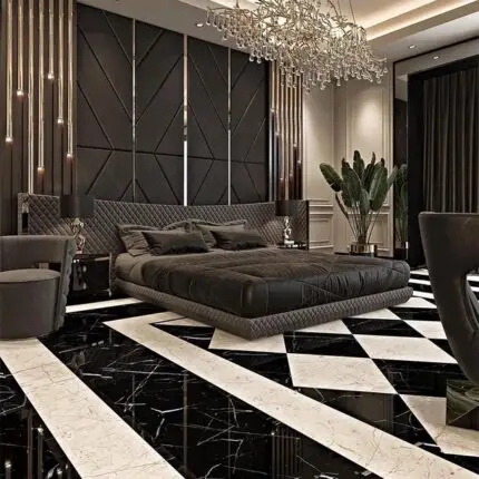 Chorus Premium Velvet Upholstered Bed and pair of bedside tables for villa