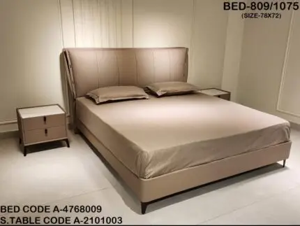 ₹195,265.00 Exclusive of taxes.Impression Beige Contemporary Minimalist style Velvet Upholstered King Size Bed with bedside tables