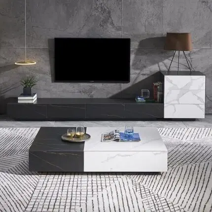 Original price was: ₹110,975.00.₹98,346.00Current price is: ₹98,346.00. Exclusive of taxes.Iota Modern Rectangular Coffee Table | White & Black Marble Finish