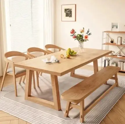 ₹89,500.00 Exclusive of taxes.Contemporary Sakura Sheesham wood Dining Table, bench and Chair Set: Embrace Minimalist Elegance with Natural and Walnut Finishes | Cafe Designer Dining Set – 1+4Pc