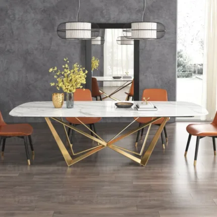 Angus Dining Table Stainless Steel Golden Leg + Natural Marble Top Table