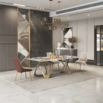 ₹89,500.00 Exclusive of taxes.B&M Modern Design Sintered Stone Dining Table with Stainless Steel base