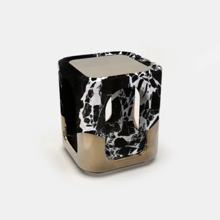 ₹23,560.00 Exclusive of taxes.Gold & Black Marble Side Table – Luxe Accent Perfection