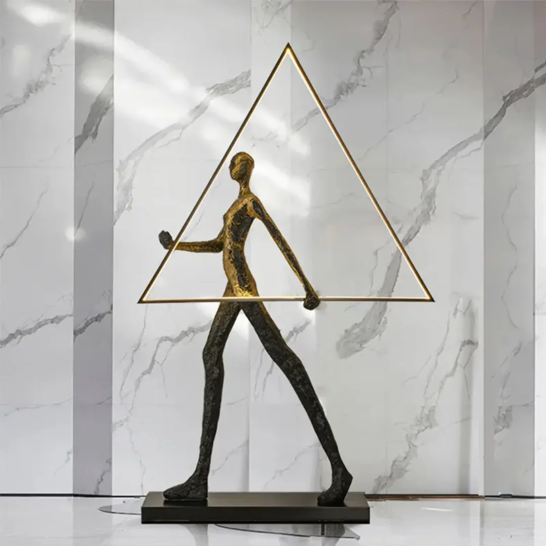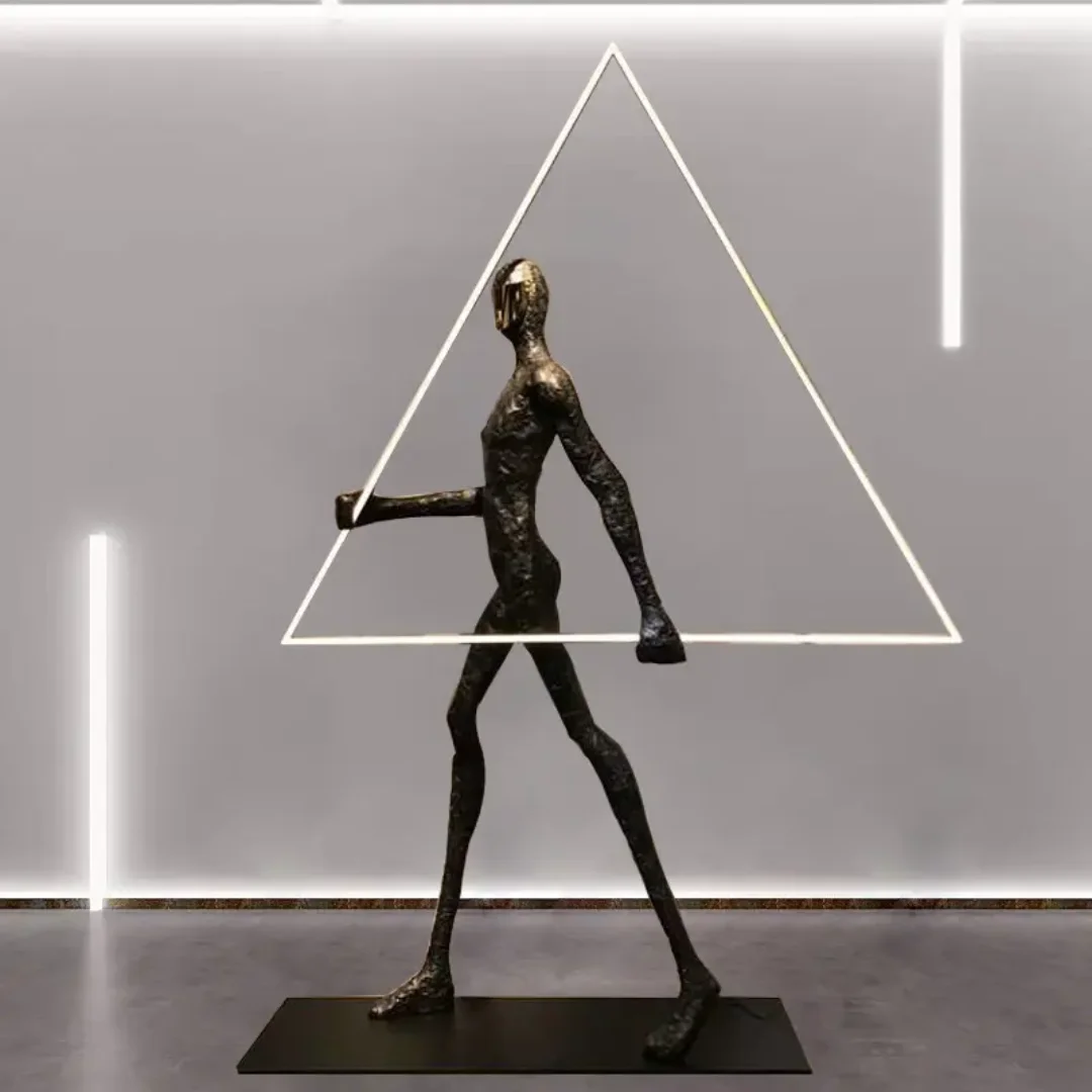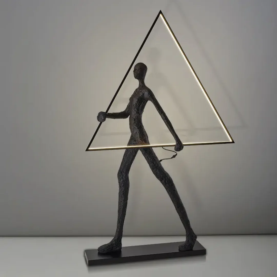 Abstract floor lamp sculpture hold triangle portrait art human statue floor lights