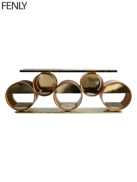 Material: PVD Coated Stainless Steel engineered Wood Board, Stone Top Colour: Multicolor Dimensions: W*D*H: 263*40*96 cm (Console Unit)