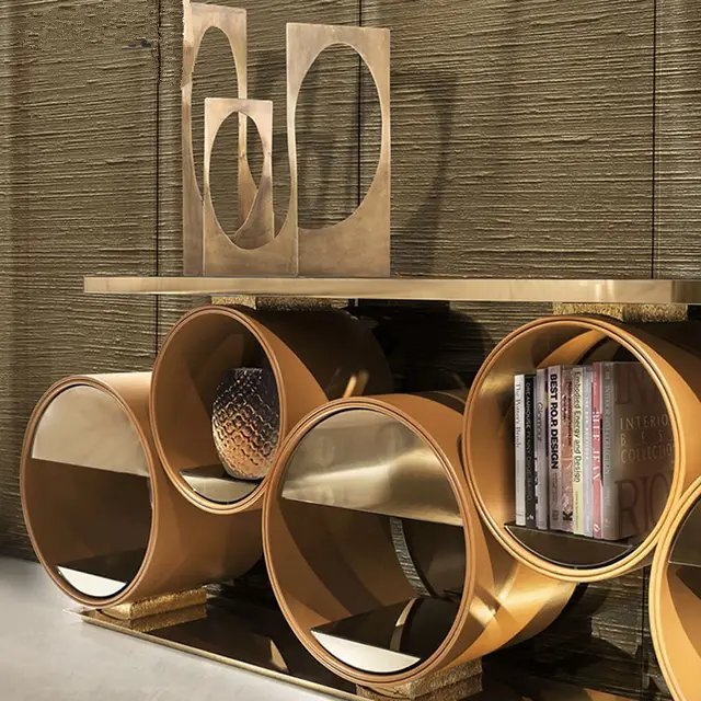 The Meta Bar Shelf and Unit masterfully integrate the highest quality PVD Coated Stainless Steel, engineered Wood Board, and a sumptuous Stone Top. This combination of materials showcases a commitment to superior craftsmanship that will stand out as a focal point in any interior.