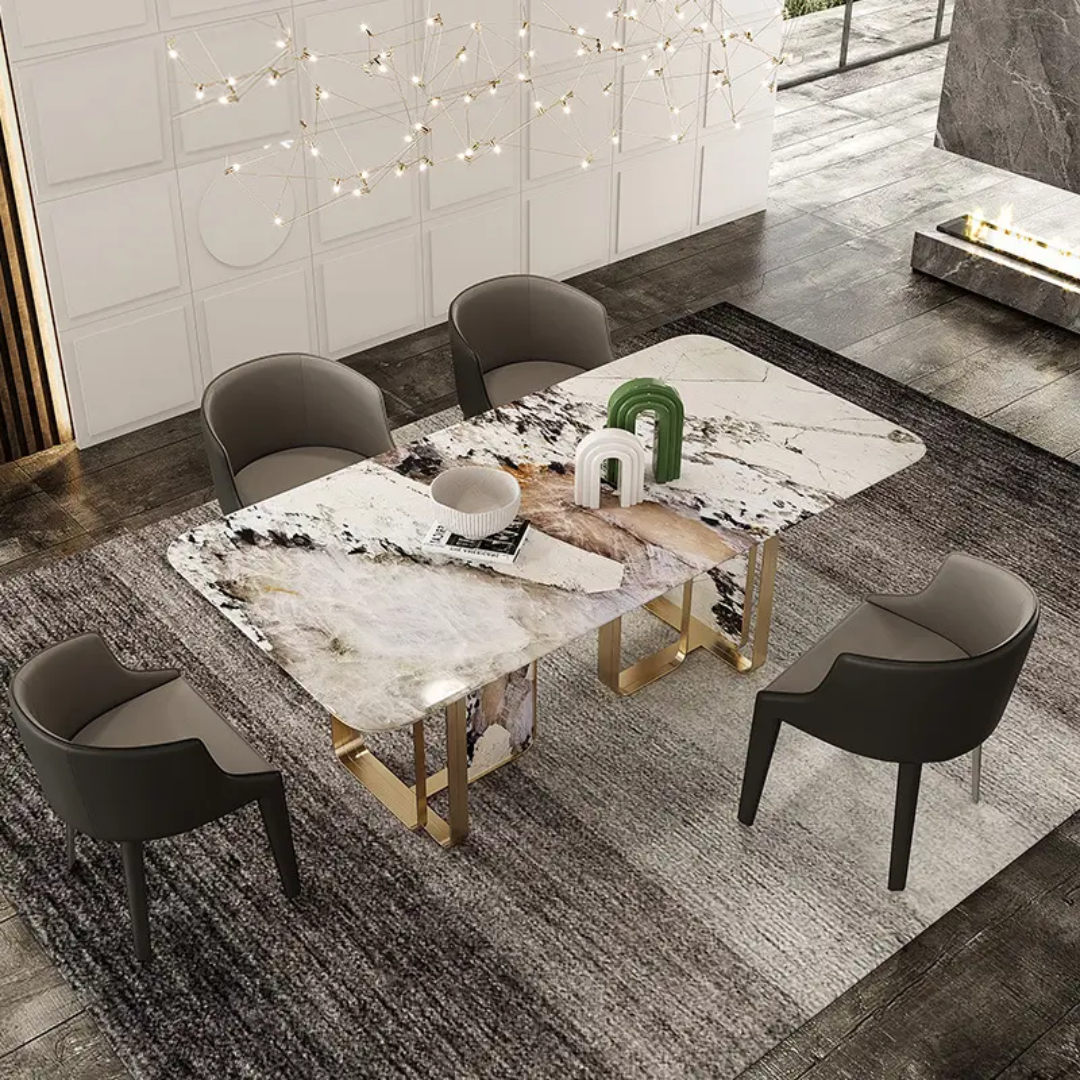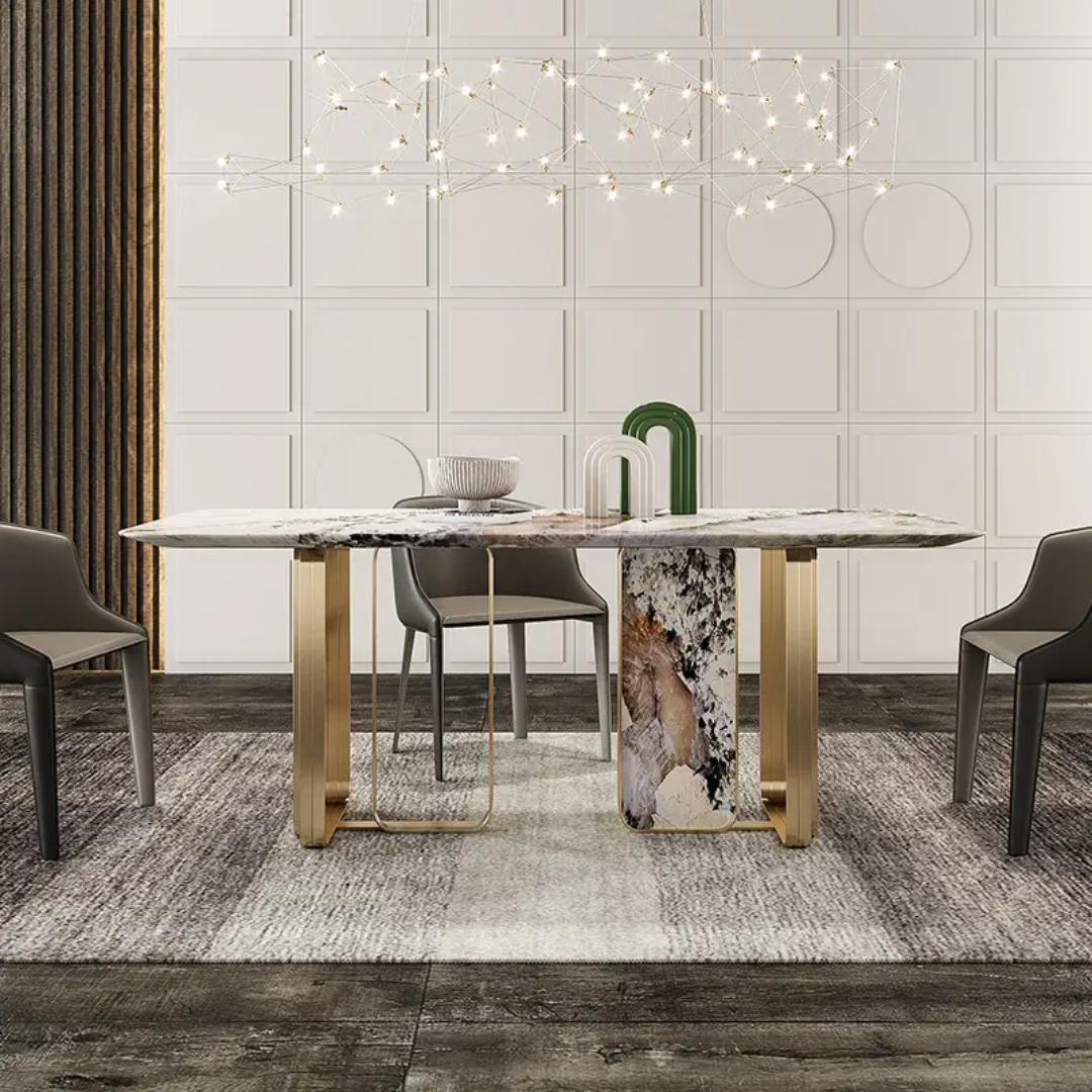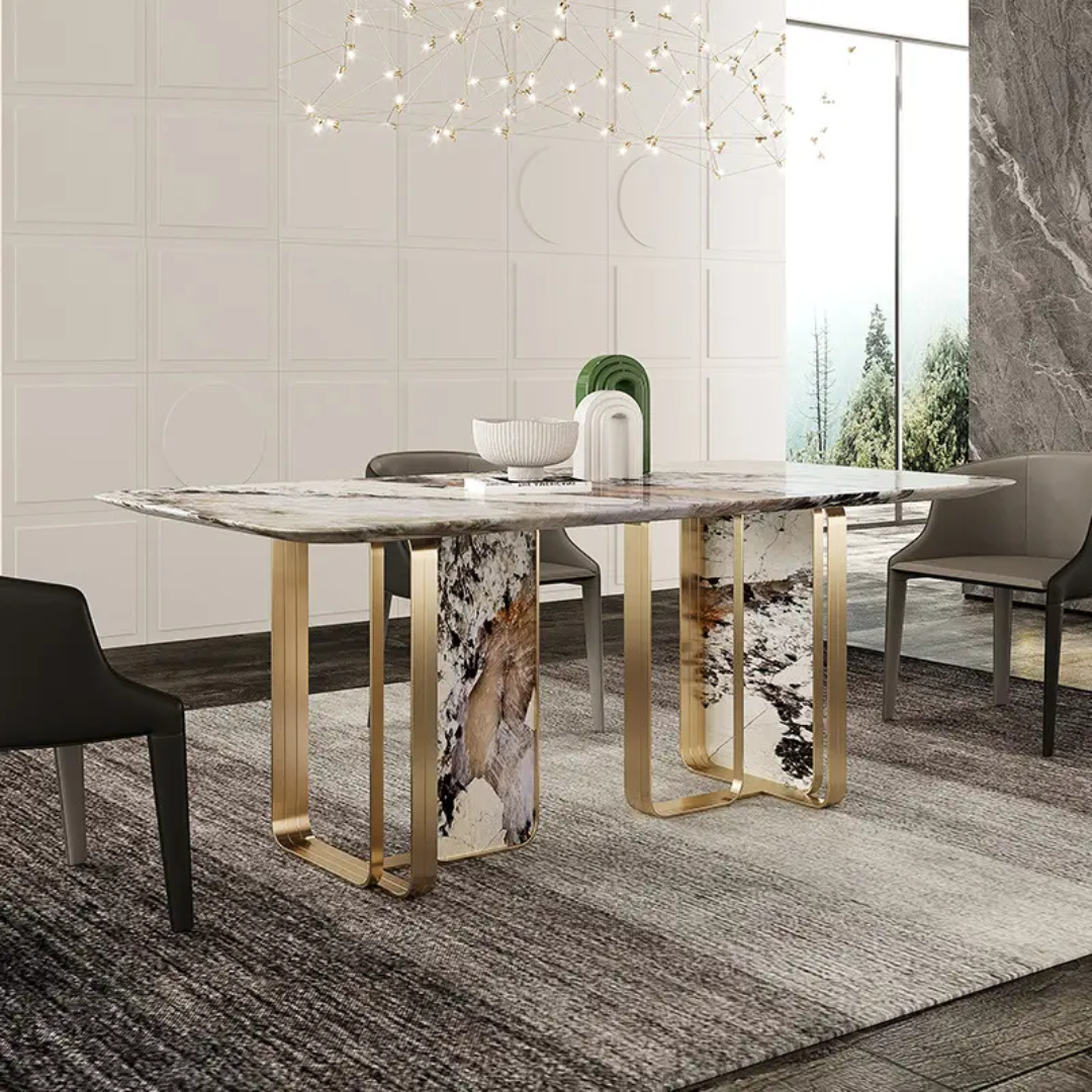 Angus Dining Table Stainless Steel Golden Leg + Natural Marble Top Table