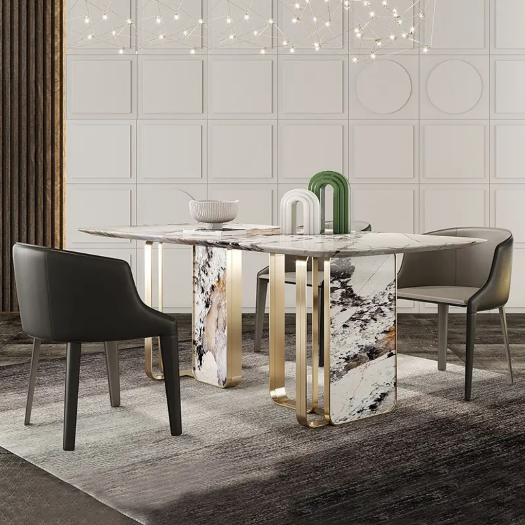 Starlink Dining Table Stainless Steel Golden Leg + Natural Marble Top Table ₹98,000.00 ₹79,700.00 Exclusive of taxes.