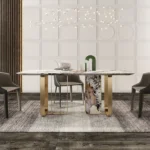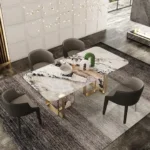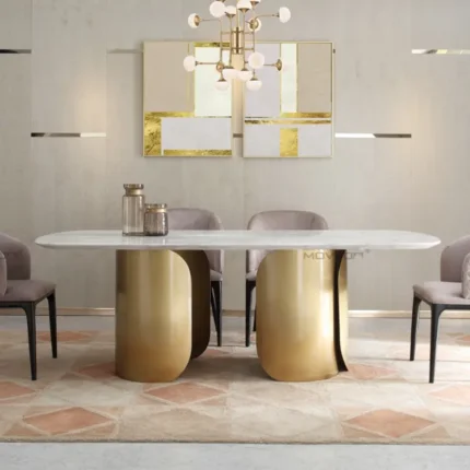 Be the first to review “Angus Dining Table Stainless Steel Golden Leg + Natural Marble Top Table” Cancel reply