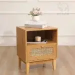 – **Material:** Crafted with premium sheesham wood frame and durable cane, this bedside table offers both style and reliability.