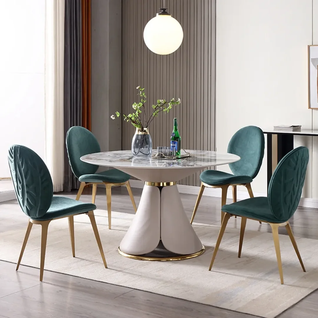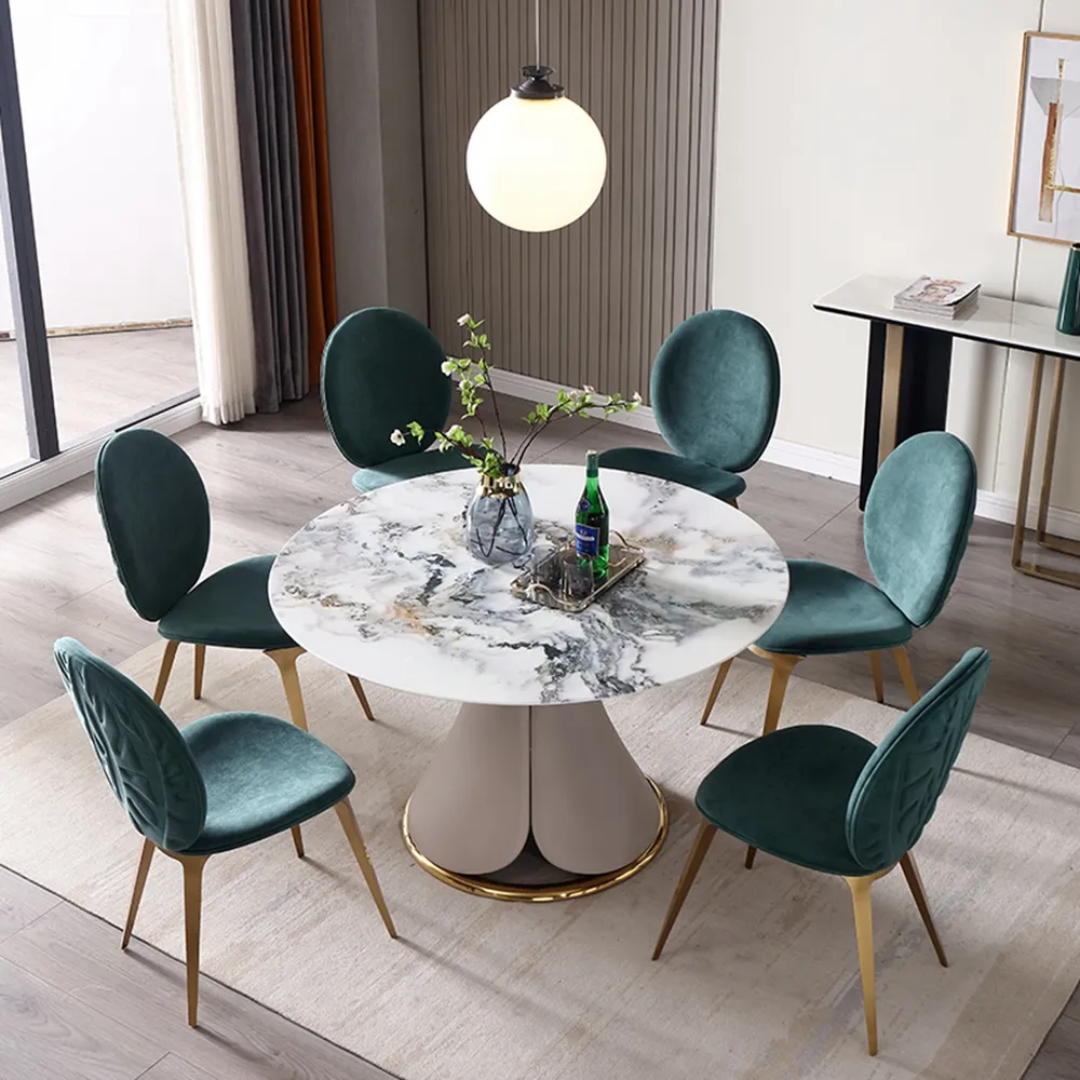 Mixing: Some use velvet chairs at table ends (host/hostess positions) with simpler chairs along sides—creates hierarchy while managing cost and maintenance.