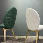 Embossed Velvet Dining Chair: 45×45×78cm. Velvet upholstery with embossed pattern. Available in ivory and green; custom colors by request after order. Sold individually or in sets.