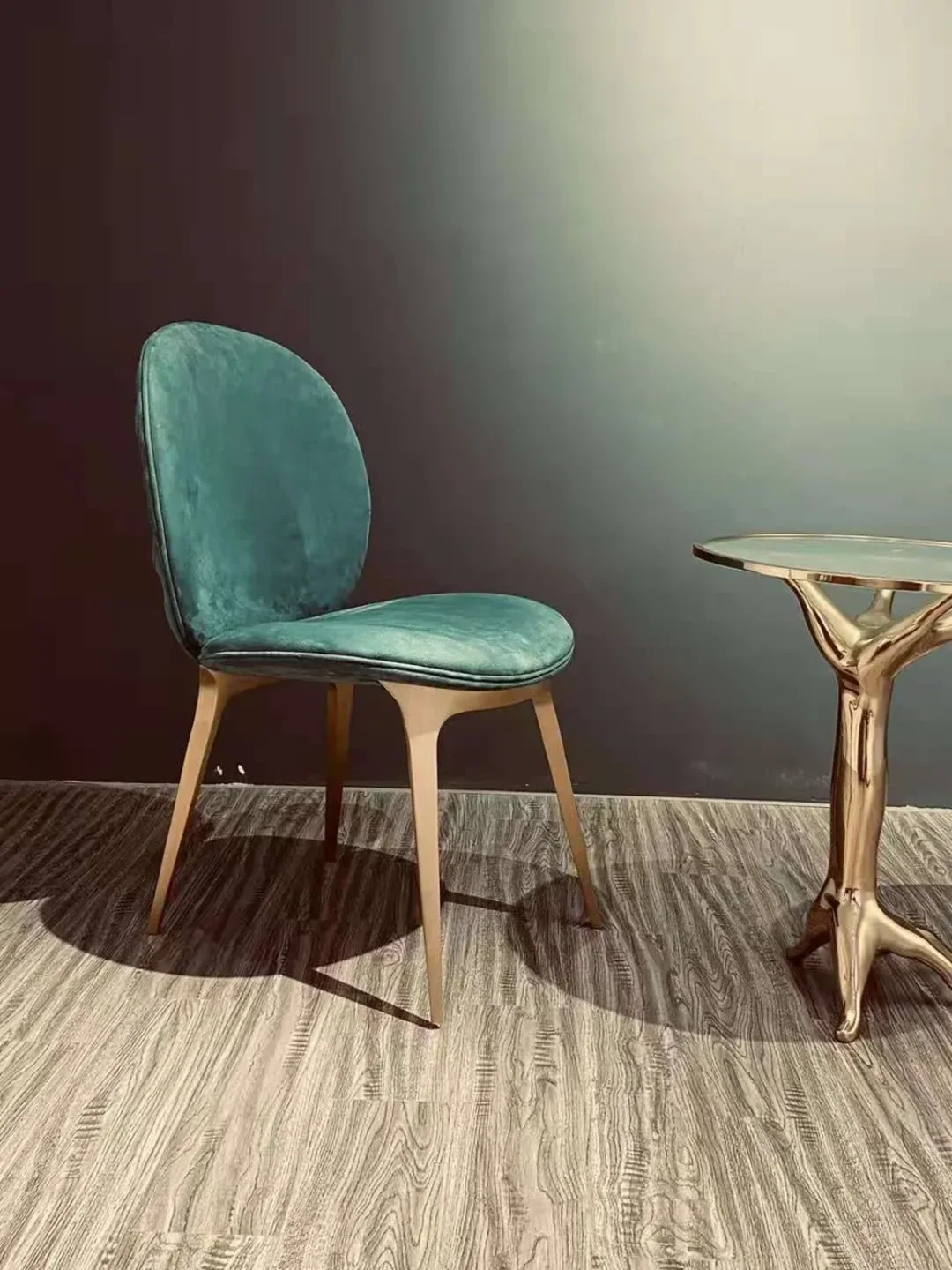 This textural play serves dual purposes. Aesthetically, it prevents the flat monotony single-color velvet can present across multiple chairs. Practically, it conceals minor wear patterns that plain velvet would reveal more readily.
