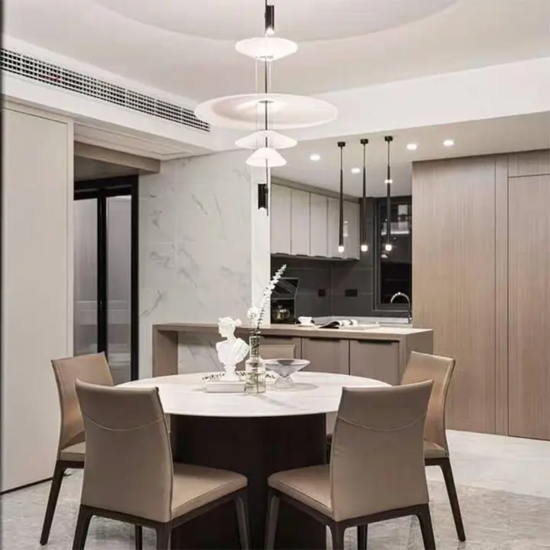 Open Plan Living: Define zones without walls. The pendant creates a ceiling-plane marker that psychologically anchors space below.