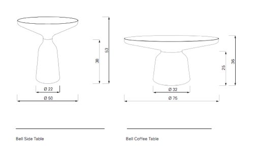 – **Dimensions:** Offers versatility with two sizes; the side table measures 50 x 53 cm (Diameter x Height) and the coffee table measures 75 x 36 cm (Diameter x Height).
