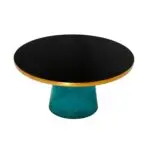 Black marble top coffee table with PVD coated finish, available in round shape. Durable, scratch-resistant, stain-resistant, and fade-resistant. Spacious tabletop, perfect for displaying coffee table books, magazines, and other decorative items.