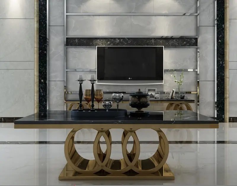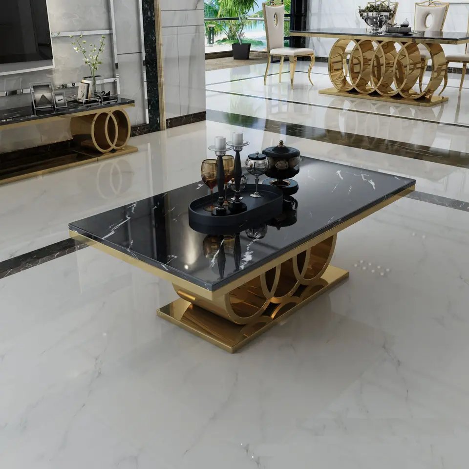 Dynasty Coffee Table Glamourous Living Room Stainless Steel Base Faux Marble top Coffee Table