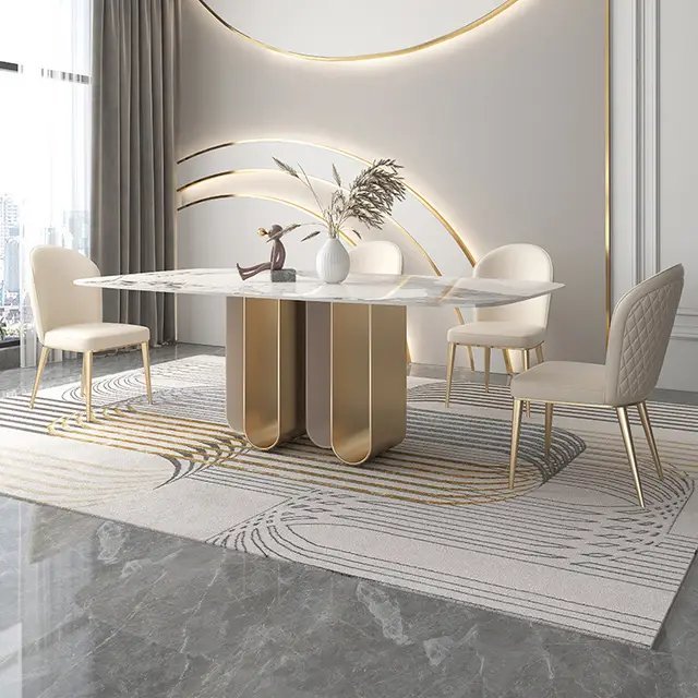 Rendezvous Dining Table Stainless Steel Golden Leg + Natural Marble Top Table