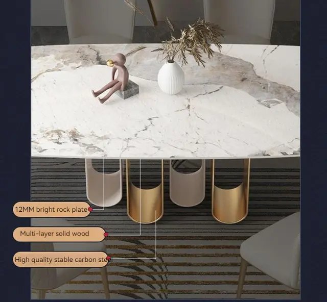 Be the first to review “Chelsea Dining Table Stainless Steel Golden Leg + Natural Marble Top Table”