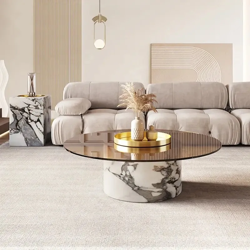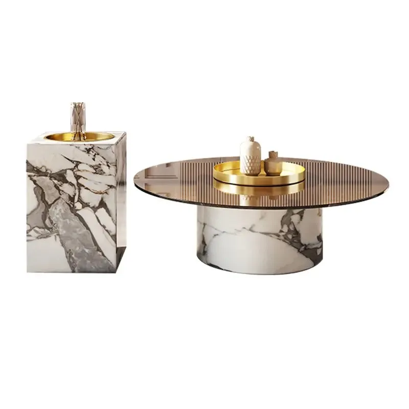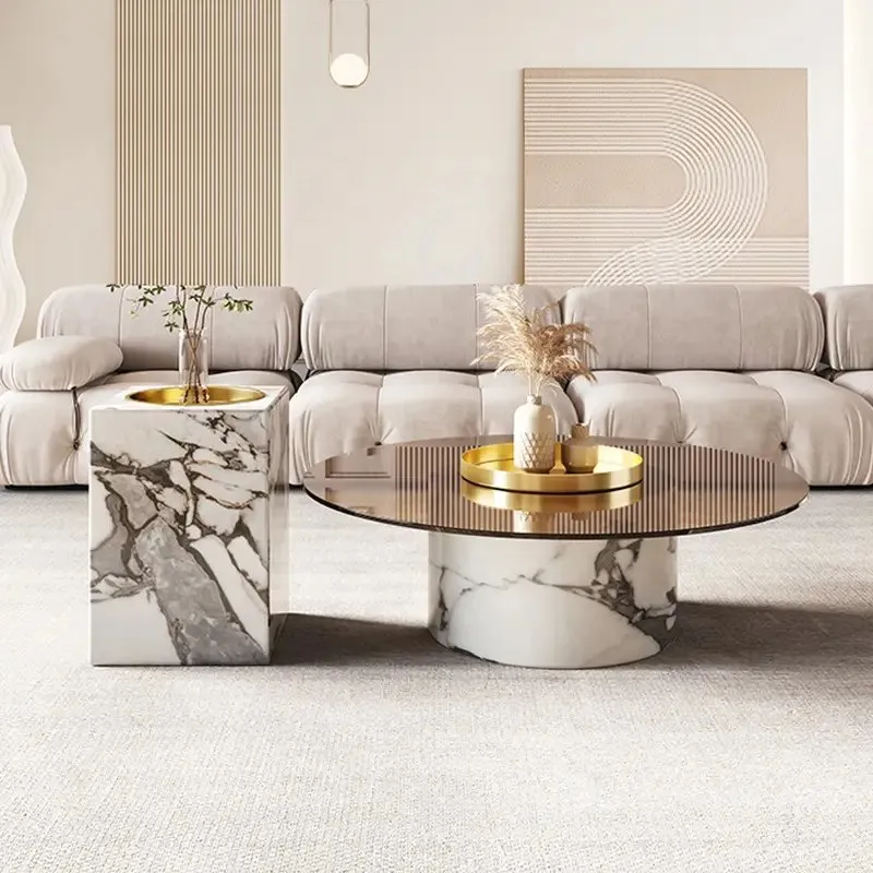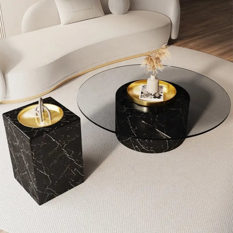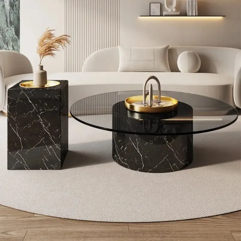Luxurious Hussn Marble and Glass Coffee Table Set