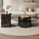 – **Elegant Design:** The large table features a round glass top, perfect for gathering around, while the smaller table’s cuboid shape offers a contemporary twist, ideal for versatile placements within your living area.