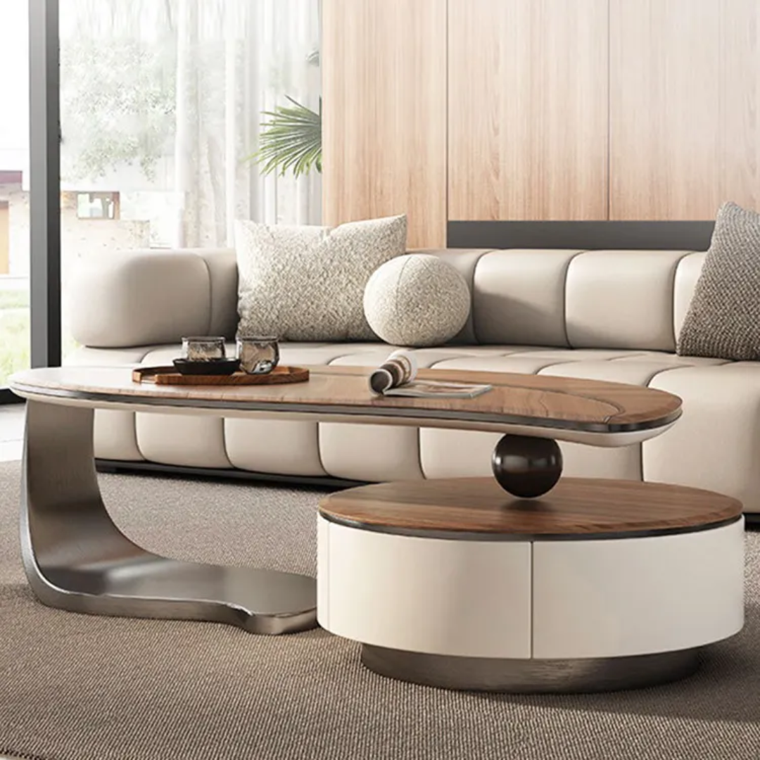 Coffee table set with storage, eco-friendly wooden coffee tables, designer living room tables, luxury stainless steel base table, 140x69x46 cm coffee table, sustainable furniture, modern coffee table pair, Crosby furniture online, round coffee table with hidden storage.
