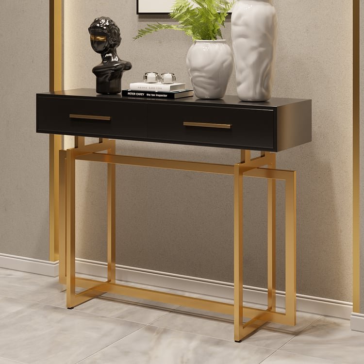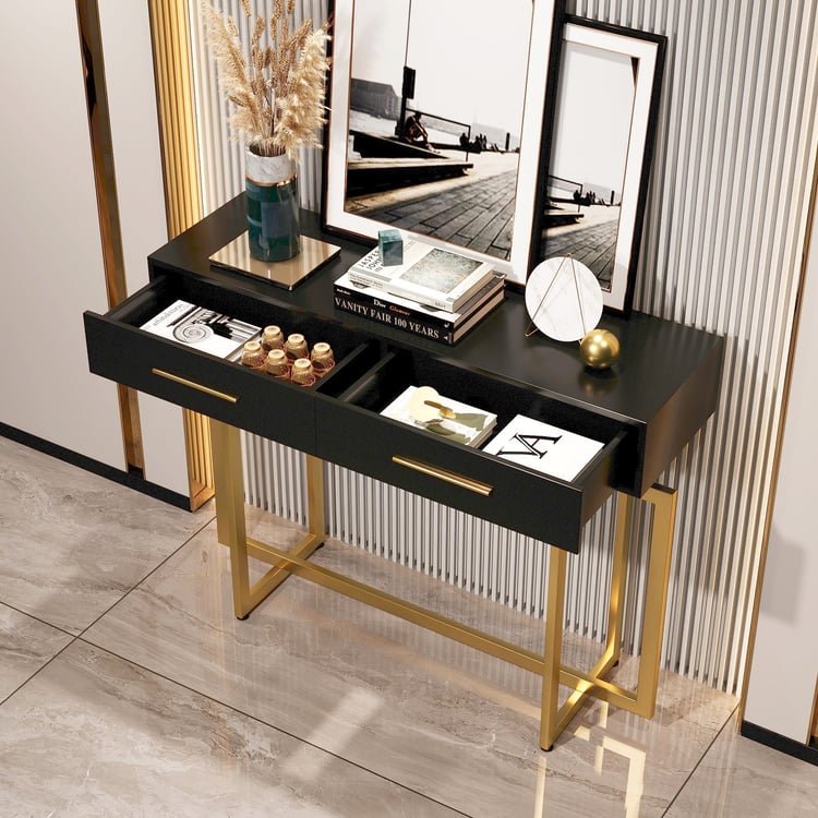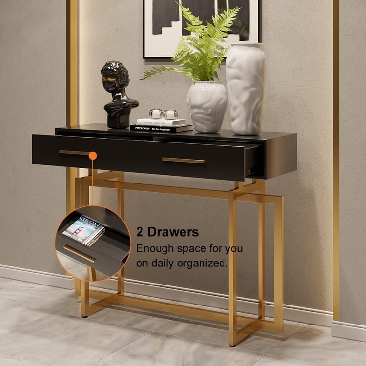 Cooper Console Table with Storage Drawers and Metal Legs in Gold Metal Console Table