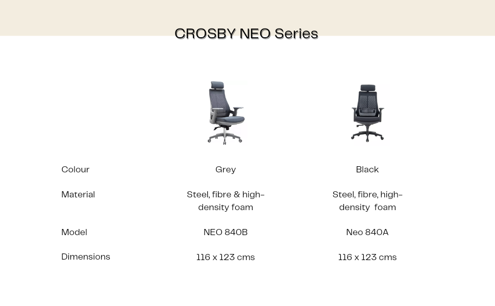 Introducing the Crosby Neo Series ergonomic office chairβ€”a revolutionary seating solution that transforms 8-hour workdays into comfortable, productive experiences. Featuring breathable mesh construction, adjustable lumbar support, and a sleek gooseneck design, this executive chair combines cutting-edge ergonomics with sophisticated aesthetics to elevate your workspace and protect your health.