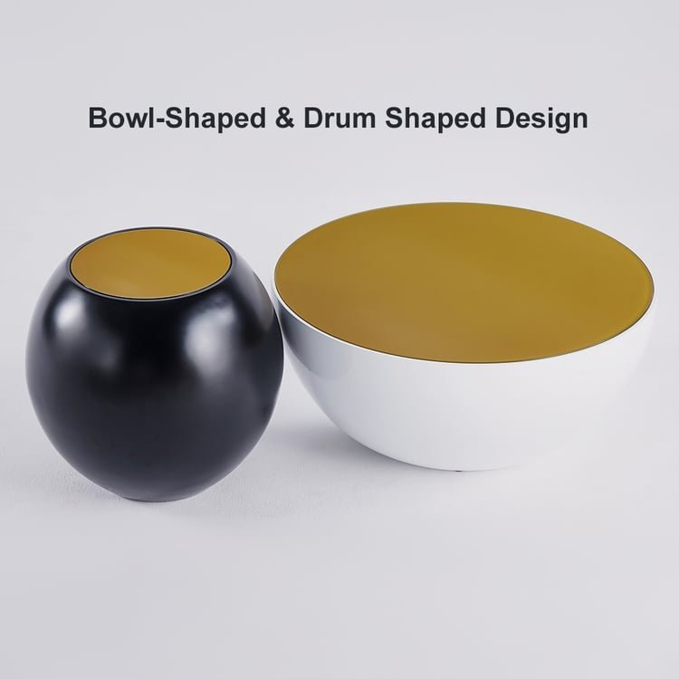 modern coffee table, round fiberglass coffee table, mid-century modern furniture, black and white coffee table, designer drum coffee table, luxury living room furniture