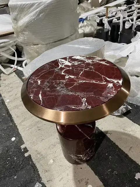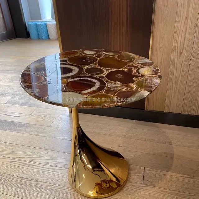Drop End Table Agate Stainless Steel Gold Leg