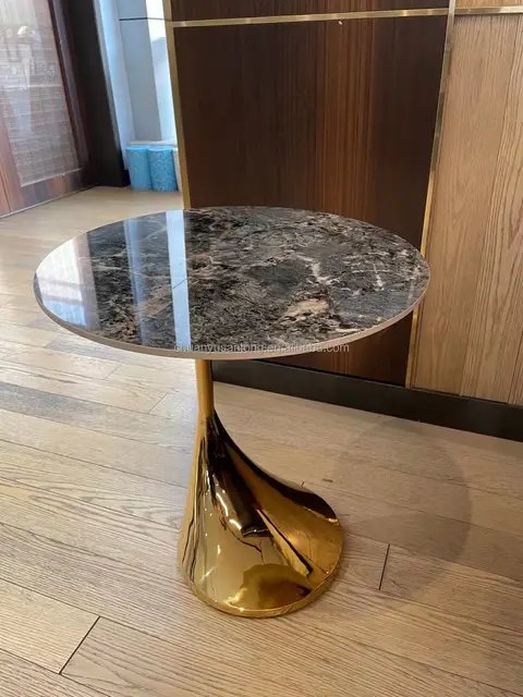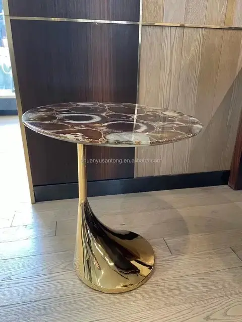Home Furniture TABLES AND CONSOLES End Tables Drop End Table Agate Stainless Steel Gold Leg