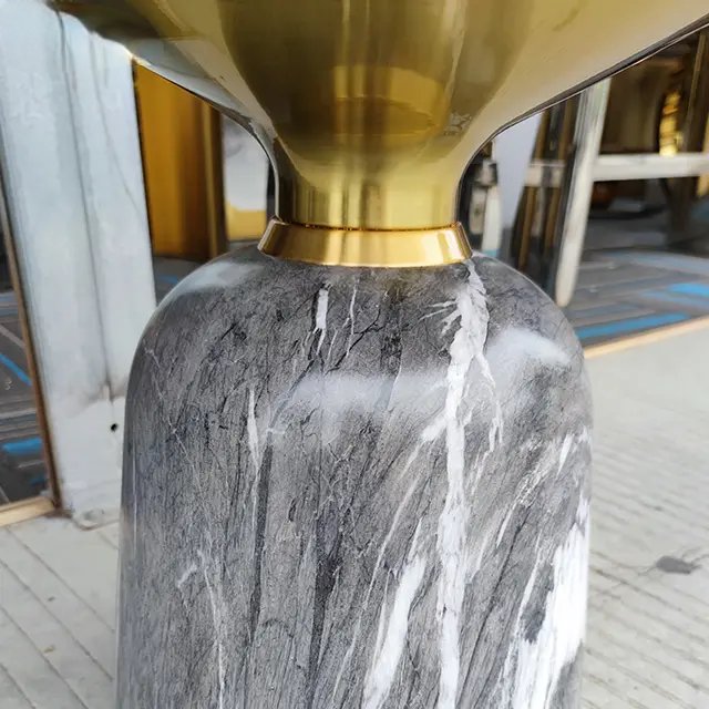 The faux marble counter top is easy to clean and maintain, and it also allows you to showcase your favorite decorative items. The grey stone base is sturdy and durable, and it also adds a touch of luxury and sophistication to the table.