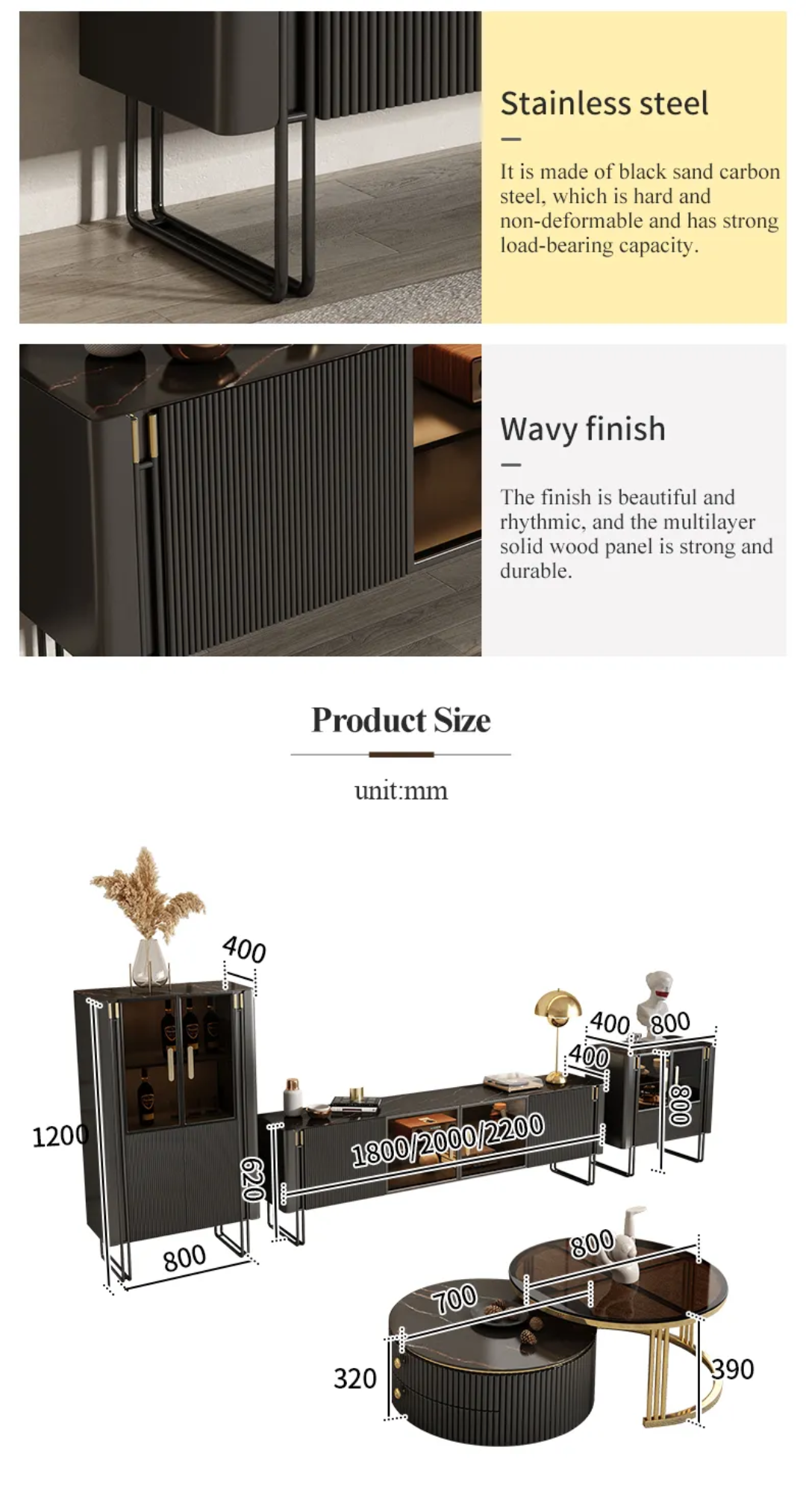 Crafted with a sturdy carbon steel base and a natural finish wooden board, this TV unit isn’t just about looks; it’s built to withstand the test of time. Its robust construction ensures that your entertainment center stays strong and stylish.