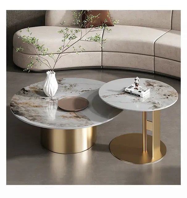 Modern style and approachable, contemporary design seamlessly combine in this curated coffee table. Composition of Sintered Stone top, finish in gold to the stainless steel base, the coffee table is sturdy and long-usage. Purchase this charming coffee table to arrange your house and add some interest to your life.