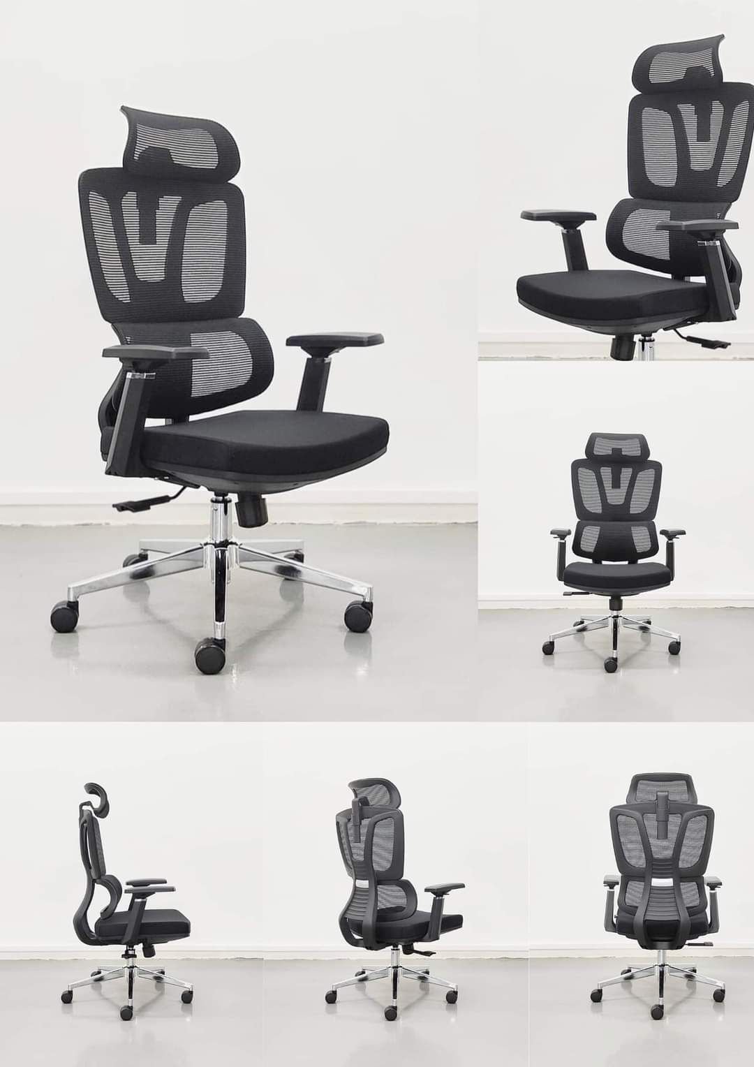 High Back Office Chair with Height Adjustable Headrest Mesh Office Arm Chair