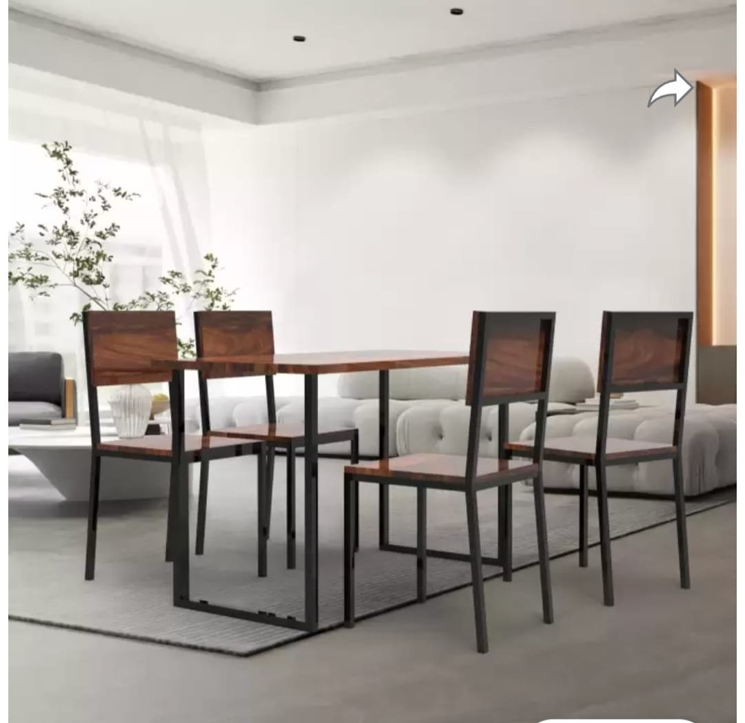 Iron Frame Sheesham Wood Top Dining Table with Chairs Metal 4 Seater Dining Set Teak Finish