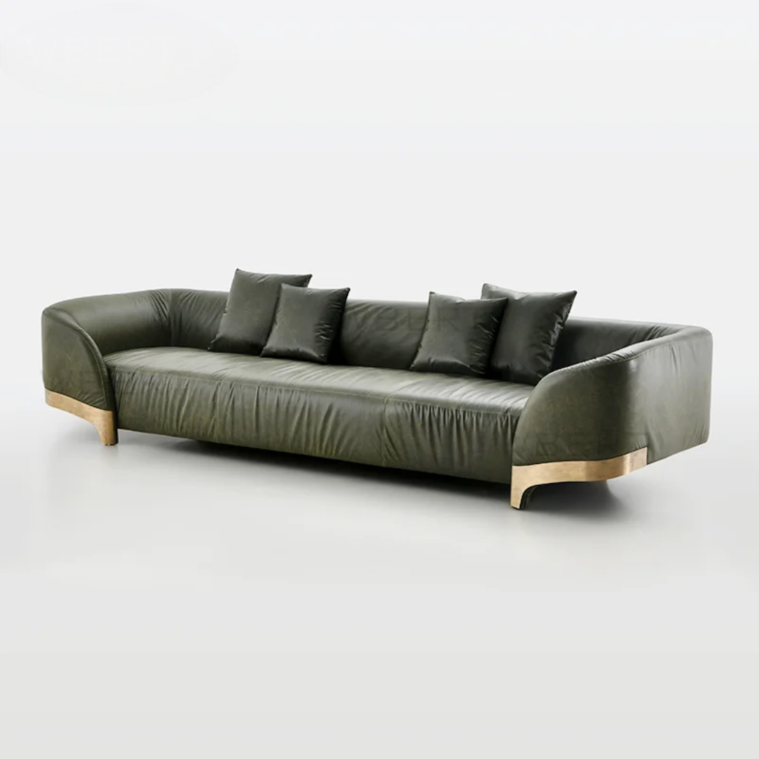 The Crosby Sofa reimagines Scandinavian design through elegant curves and luxurious materials. At 372cm of olive green leather beauty, this isn’t just seating—it’s sculptural comfort that transforms modern living spaces into sophisticated sanctuaries.