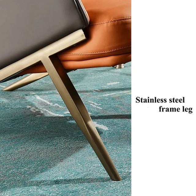 Introducing the Luxe Comfort Gold Chrome Accent Chair, where modern design meets luxurious comfort. This accent chair is meticulously crafted with gold chrome stainless steel and a bending plate structure, offering a sleek and contemporary look. The faux leather upholstery, available in mustard and tan, combined with high-density sponge cushioning, ensures an indulgent seating experience.