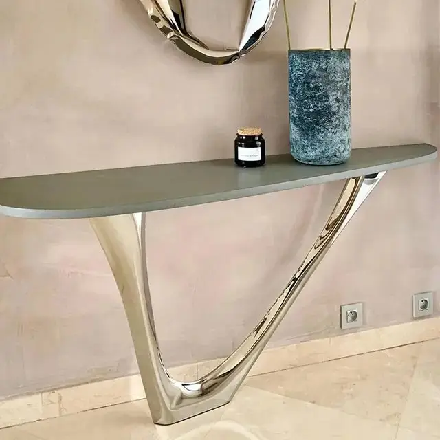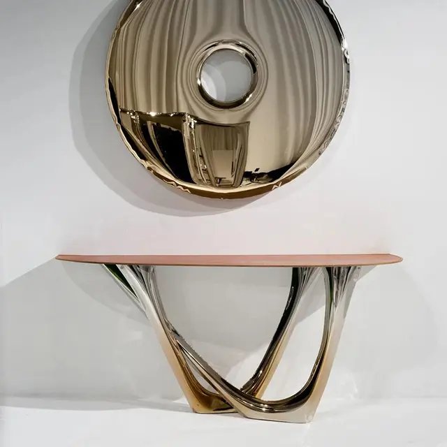 Discover the epitome of sophistication with the Luxor Gold Modern Console Table, masterfully designed to elevate any home or office space. This contemporary console table combines the durability of stainless steel with the timeless beauty of stone, presenting a luxurious gold finish that complements any decor style from classic to contemporary.