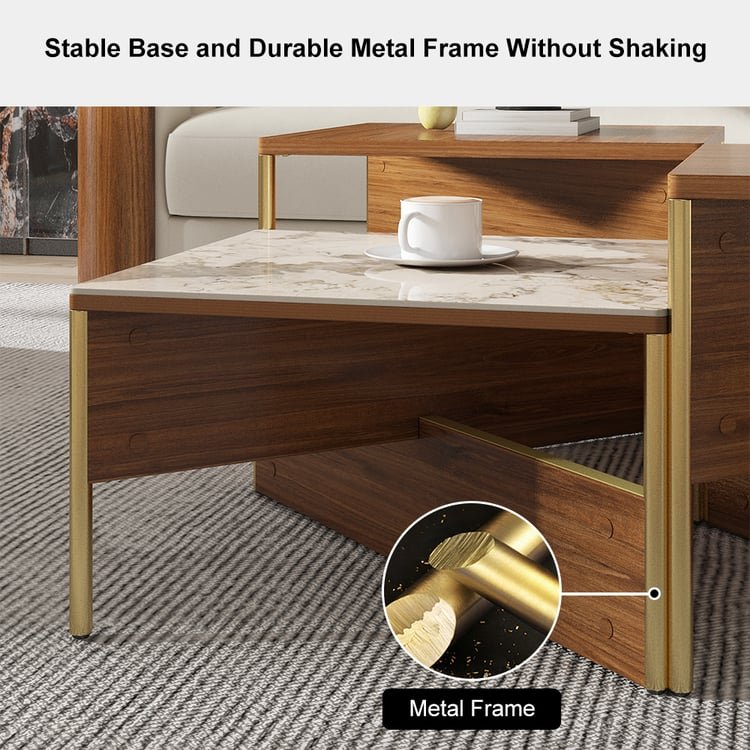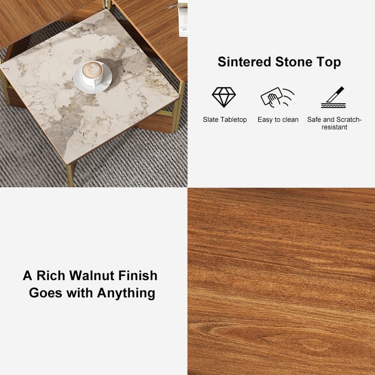 Crosby Premium Walnut & Stone Low Coffee Table – Modern Elegance for Sophisticated Living