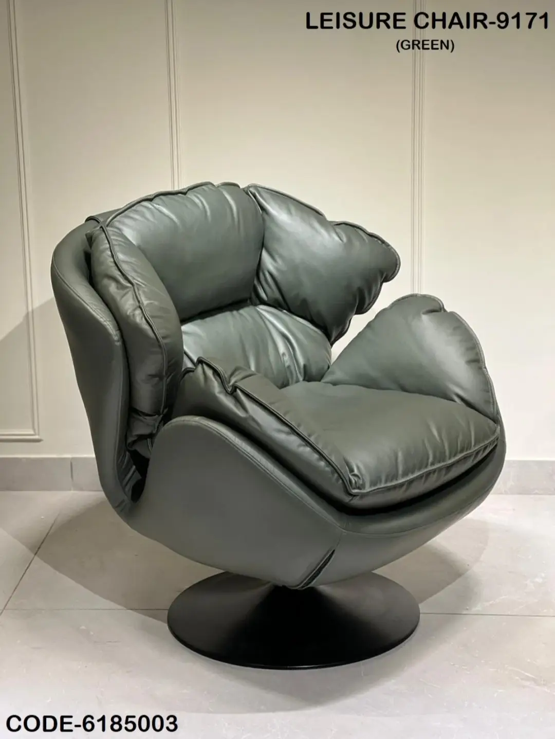 – **Material:** Upholstered in plush designer leatherette, this chair exudes elegance and luxury, while the stainless steel base ensures stability and durability.