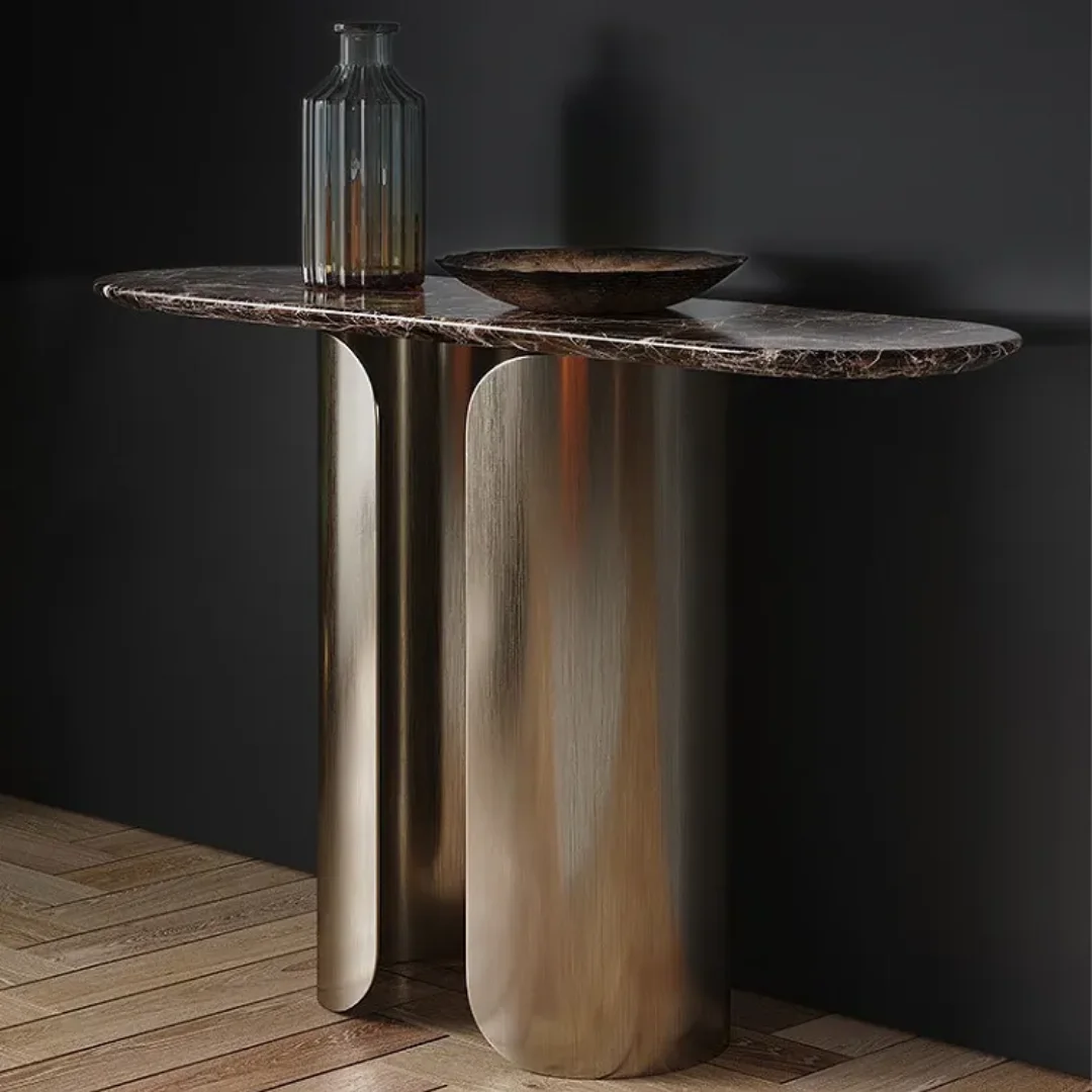 Elevate your home décor with the Venisa Stainless Steel Console Table with Marble Top. This exquisite piece combines a sleek, modern design with high-quality materials, making it a standout addition to any living space.