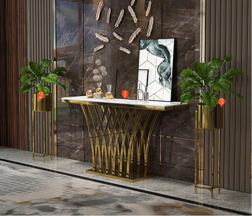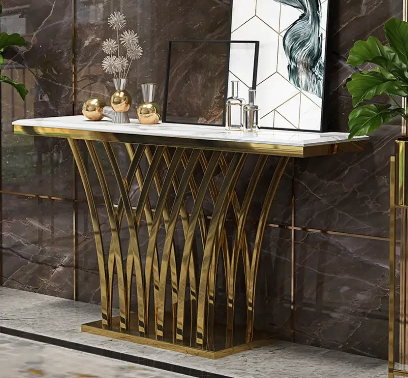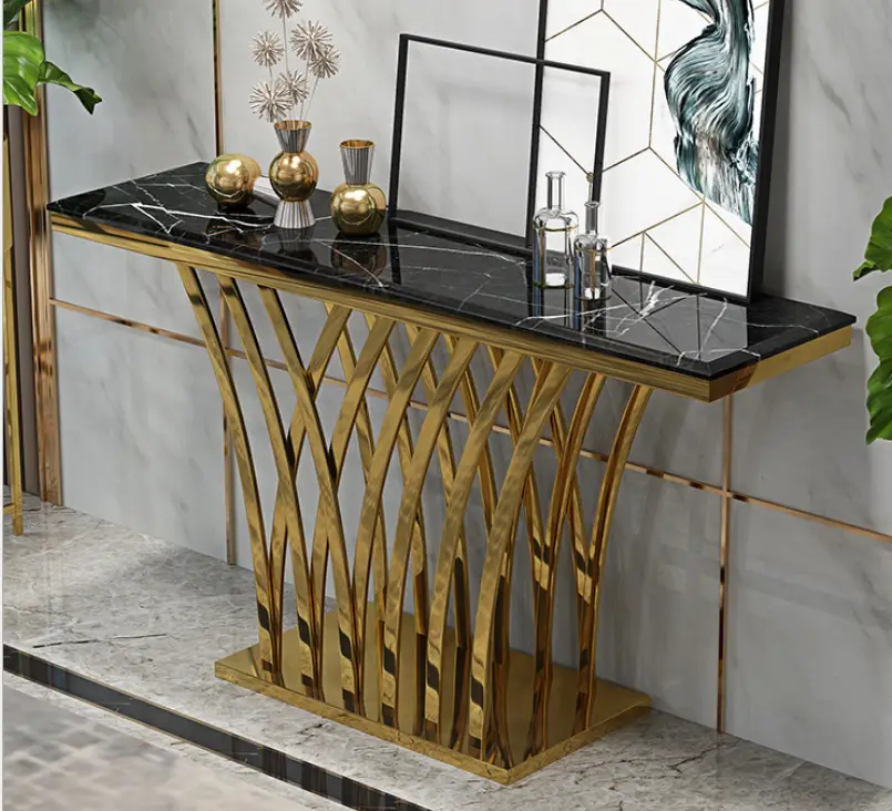 Luxury Modern Gold Metal Legs Console Table Home Furniture Hallway Marble Tabletop