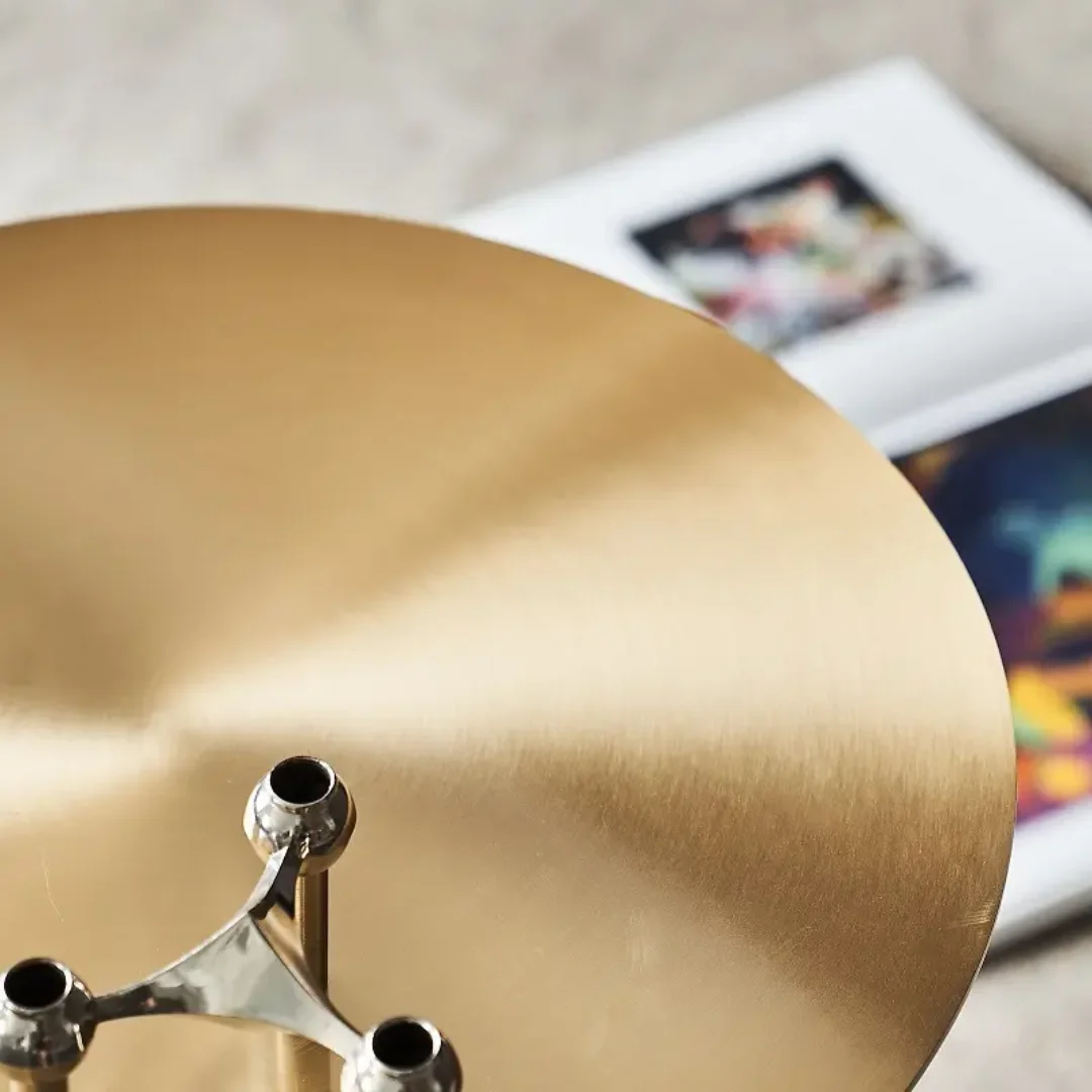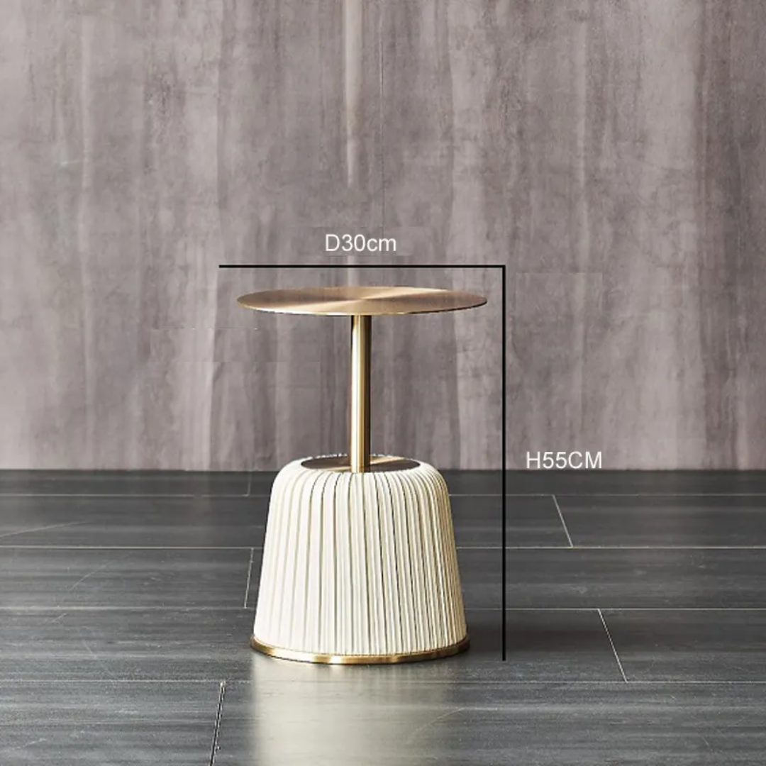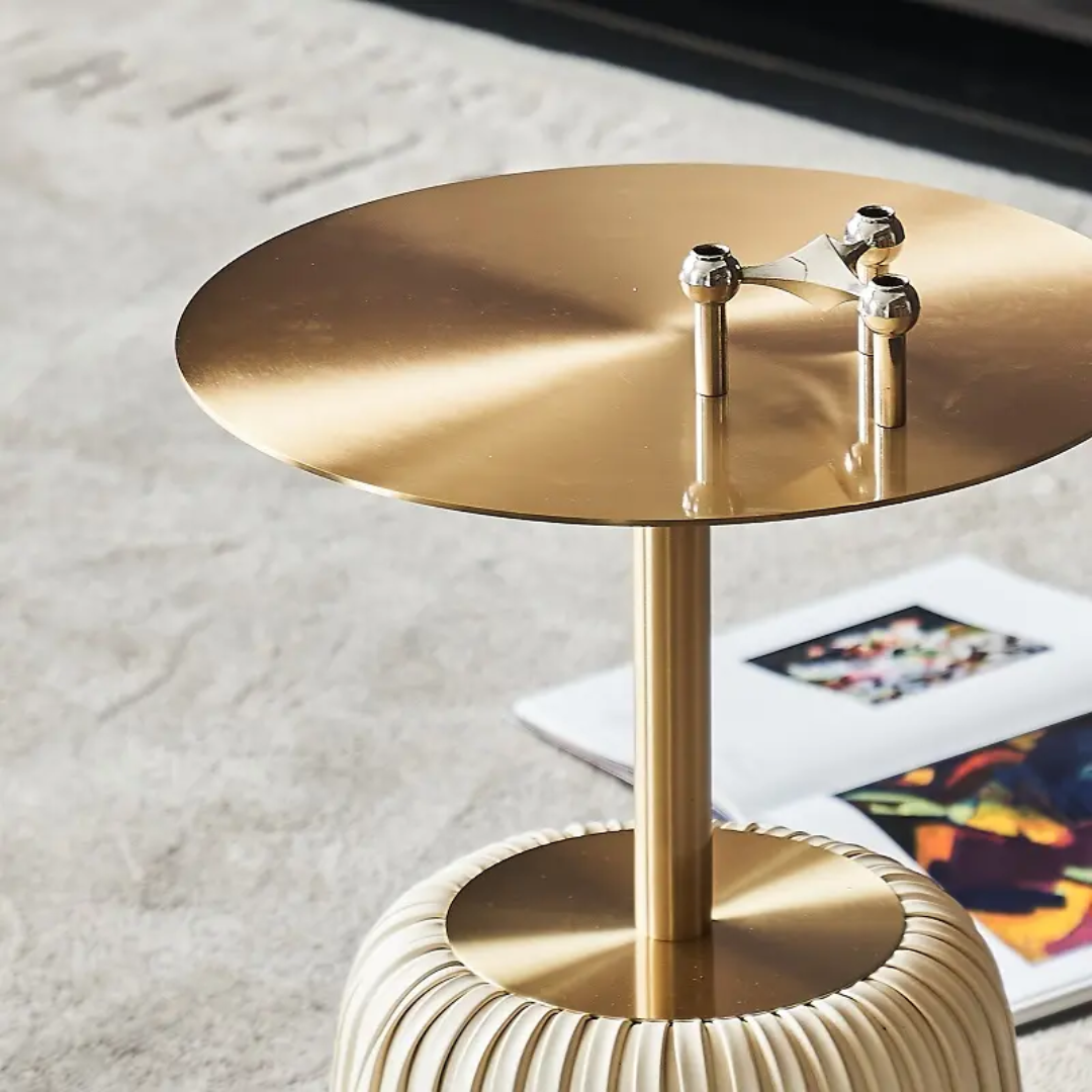 Modern style and approachable, contemporary design seamlessly combine in this curated end table. Composition of stainless steel top, finish in gold to the fabric upholstery base, the end table is sturdy and long-usage. Purchase this charming end table to arrange your house and add some interest to your life. Constructed from stainless steel materials, this end table is stain and scratch-resistant with easy-to-clean surfaces that make wiping up every day spills a breeze. It seamlessly fits into any room with the glamorous gold finish of the top.