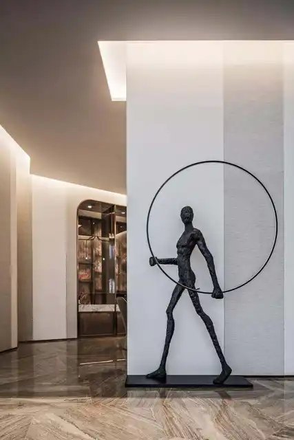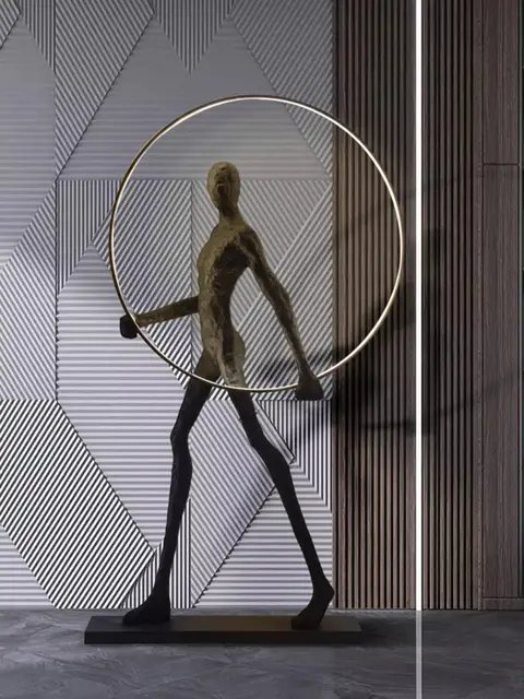 Modern Creative Modern Black Man with Hoop Statue Lamp Table